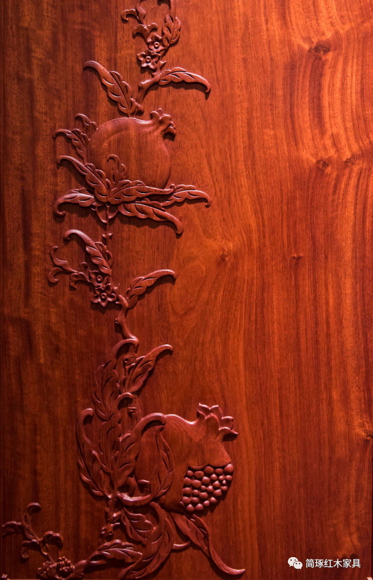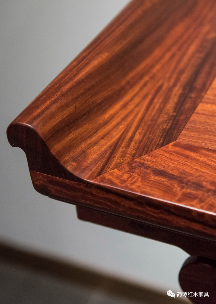 作為曾經(jīng)的黃花梨替代品,緬甸花梨木的紋理無(wú)疑是優(yōu)秀的。其紋理溫雅含蓄,豐富多變。其虎皮紋、水波紋、水滴紋等特殊的紋理形態(tài),足以和任何以紋理著稱(chēng)的名木比美。