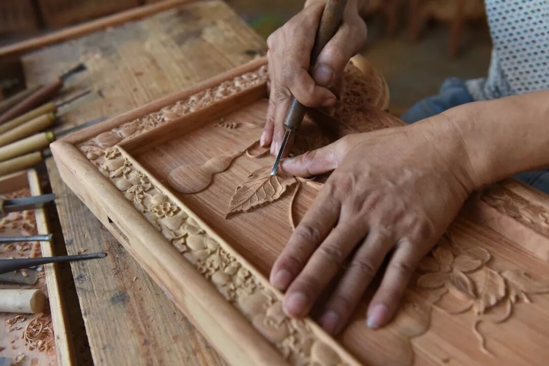 被譽(yù)為“中國木雕之鄉(xiāng)”“世界木雕之都” ——浙江東陽,有千余年的木雕歷史,東陽木雕始于唐而盛于明清。其中最為突出的是淺浮雕技藝在家具中的充分運(yùn)用,薄而立體、密而清晰、飽滿豐潤、栩栩如生,為東作家具中的一絕。