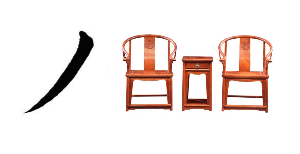 古代書法家運筆技法,“永”字八法:點、橫、豎、勾、仰橫、撇、斜撇、捺,按各自的筆勢以八字概括為側(cè)、勒、弩(又作努)、趯、策、掠、啄、磔。這八種不同的運筆好似傳統(tǒng)家具制作中不同的手法。圍合一體,精氣內(nèi)含。